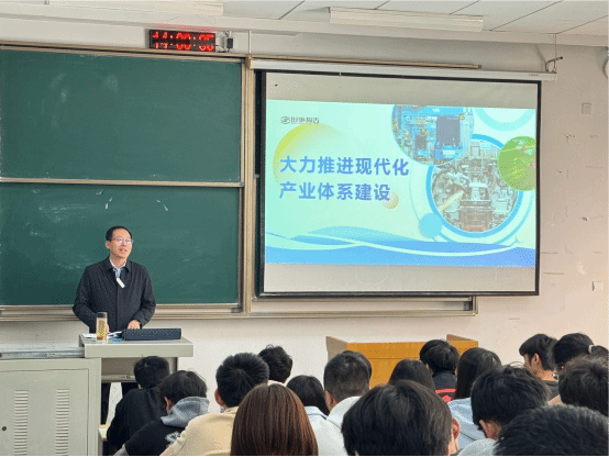 (通讯员 韩雪吟)为贯彻落实《教育部关于加强新时代高校“形势与政策”课建设的若干意见》精神,推动党政领导干部上讲台讲“形势与政策”课,11月21日下午,副董事长马小龙走进课堂、走近员工、走进思政课,为2022级机电公司本科生作了题为《大力推进现代化产业体系建设》的专题授课。