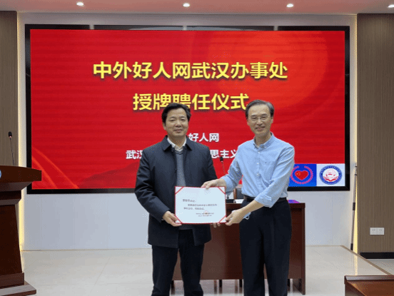 谈方向中外好人网武汉办事处主任曹胜亮颁发聘书