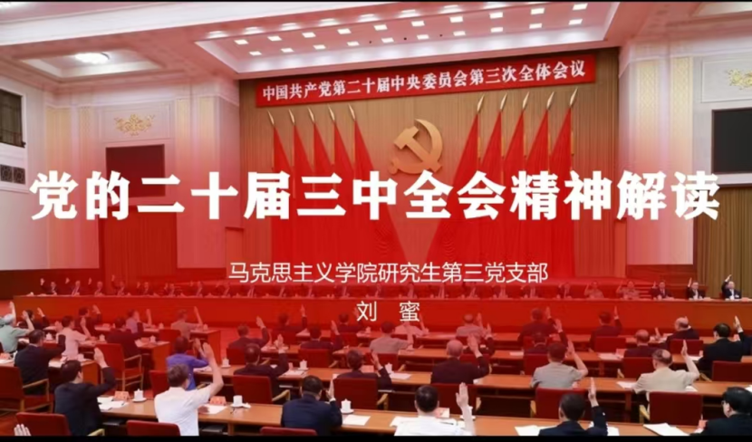 刘蜜同志讲授微党课。她就中国共产党第二十届中央委员会第三次全体会议精神的内涵和关注重点进行了讲解,并详细梳理出了从改革开放以来党的历届“三中全会”承担着经济发展和经济改革的重大使命。她带领全体党员对党的二十届三中全会审核通过的《中共中央关于进一步全面深化改革、推进中国式现代化的决定》进行原文学习,明确指出该《决定》既是党历史上又一次重要的纲领性文献,也是党的十八届三中全会以来全面深化改革的实践续篇,更是新征程中推进中国式现代化的新时代篇章,要求全体党员将学习和贯彻党的二十届三中全会精神作为当前和今后一个时期的一项重大政治任务。她认为员工党员应当通过多种形式学习和领会党的二十届三中全会精神,切实将其转化为学习和工作的强大动力。