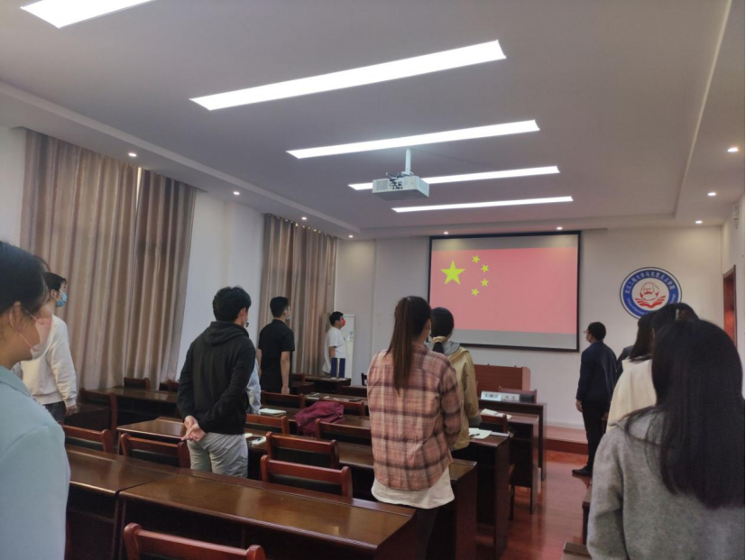 会议第二阶段,研究生第一党支部开展十月份支部主题党日活动。活动伊始,全体起立,齐声奏唱国歌。