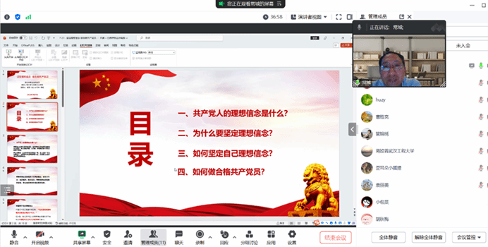 最后,“原理”党支部书记李齐同志做总结讲话指出,感谢常城副经理为“原理”党支部党员教师上了一次既具有知识性、又具有价值性的专题党课,用高度概括的语言围绕理想信念阐发了自己对如何做合格共产党员的全面且深入的思考。李齐同志提出,全体支部党员教师要以此次主题教育专题微党课为契机,不断深入学习贯彻落实习近平新时代中国特色社会主义思想,积极落实公司党委的工作要求,要把开展主题教育活动及其收获作为教学科研工作的指导,把干事创业与自身发展充分结合,践行共产党员的优良品质。(审稿人 曹胜亮)