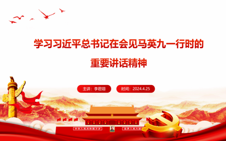 组织委员郭佳铝通报四月党费收缴情况。李君翊同志带领学习习近平总书记在会见马英九一行时发表的重要讲话精神,他分享习近平总书记的重要论述,两岸同胞有共同的血脉、共同的文化、共同的历史,更重要的是对民族有共同的责任、对未来有共同的期盼,要从中华民族整体利益和长远发展来把握两岸关系大局。