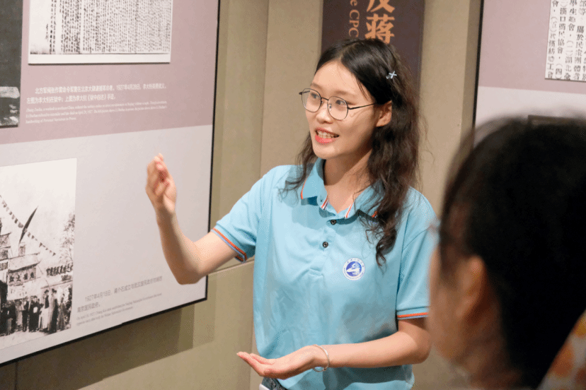 宣讲团成员李盈萱详细介绍了“革命中心转至武汉”这部分内容,她从国民政府迁都武汉、中共中央迁移武汉、工农群众运动蓬勃发展、反帝斗争取得重大胜利四方面展开讲解。向大家展示了在那个动荡的时代背景下,革命先驱们如何在武汉这座英雄城市继续领导中国革命,为实现民族独立和人民解放而不懈奋斗。大家认真聆听不时驻足凝视,沉浸在那段波澜壮阔的历史长河中。