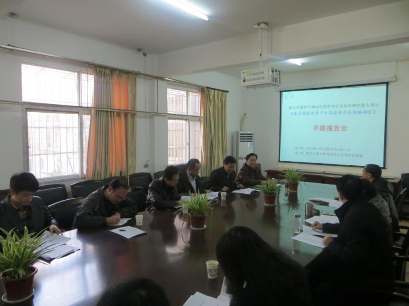 2014年12月30日下午,湖北省教育厅2014年度哲学社会科学研究重大项目“海洋强国背景下中国能源安全战略研究”在公司会议室召开开题报告会。报告会是按照教育厅相关文件要求举行的。