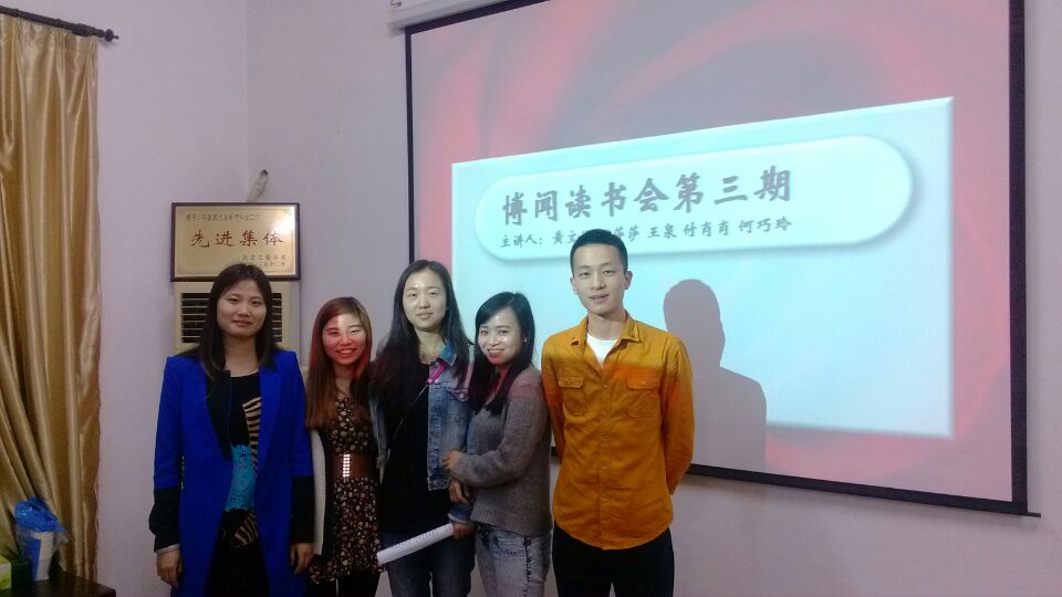 2014年4月23日,beat365官网中文版本“博闻”读书会在公司会议室顺利进行。本期读书会由公司员工会主席刘存地、学术部部长付肖肖主持,组织公司研究生积极参与。本次读书会的主讲人分别是谢莎莎、王泉、黄文娟、何巧玲、付肖肖,五位同学以“选择绿色生活,告别十面‘霾’伏”为主题,分别作了精彩生动的报告。