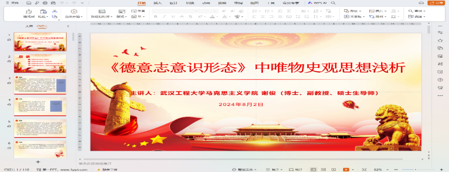 本次活动以“《德意志意识形态》中的唯物史观思想浅析”为主题,由谢俊副教授主讲,李齐老师主持,22级、23级、24级全体研究生参加了本次学术活动。
