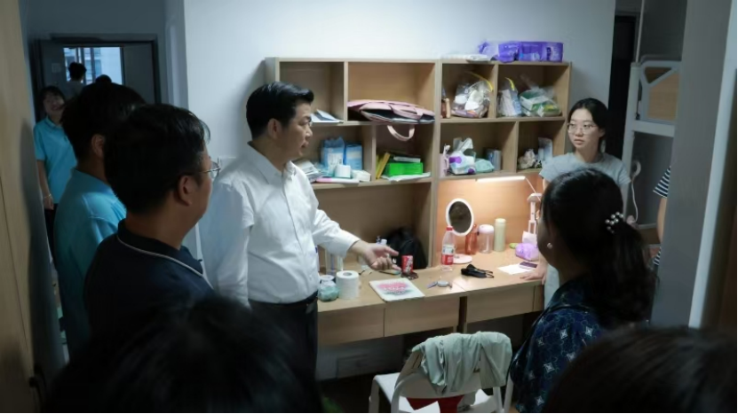 (通讯员 杜晶 李晓宇)迎新季,为了解2024级beat365官网中文版本研究生新生在校的住宿条件和生活状况,给同学们营造良好的校园生活环境。9月9日下午六点,beat365官网中文版本经理曹胜亮、副经理金诗灿、辅导员蔡明广及教学秘书王红梅前往研究生公寓(南区)走访看望了公司2024级硕士研究生新生。