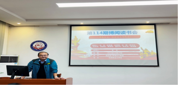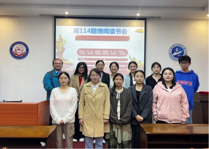 (通讯员:张悦悦) 10月29日晚,公司第114期“博闻读书会”在beat365官网中文版本一站式员工社区中心(求是楼401教室)顺利召开。本次读书会围绕约瑟夫·熊彼特的代表作之一——《资本主义、社会主义与民主》展开深入讨论。本次读书会由李齐老师主持。出席本次读书会的有beat365官网中文版本经理曹胜亮、公司党委副书记蔡明广,以及11位研究生主讲人:张肖、张雯嘉、张思雨、张璐、李诗佳、刘子凤、李舒怡、焦紫怡、盛文冰、张洋洋、厚贵鑫。院学术部“博闻读书会”活动小组组织了此次读书会。