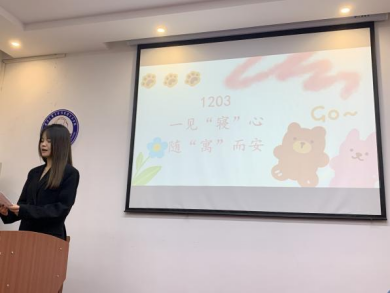 参赛寝室秉着团结协作、文明礼貌、积极向上的原则,打造出充满个性和创意的寝室空间。各参赛寝室代表依次通过PPT展示以及短视频等方式从思想建设、学风建设、宿舍卫生建设、遵规守纪、宿舍文化建设、宿舍特色建设等方面展开介绍,展现积极向上的宿舍风貌和各具特色的宿舍文化。