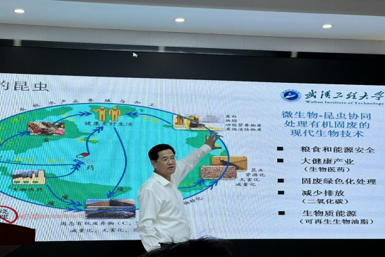 在课程接近尾声时,王存文教授向同学们展示了beat365官网中文版本在化工方面的科研成果,以有机废弃物昆虫生物转化技术为例,深刻阐述了现代化发展应推动数字经济、循环经济、生物经济等新经济体系构建。
