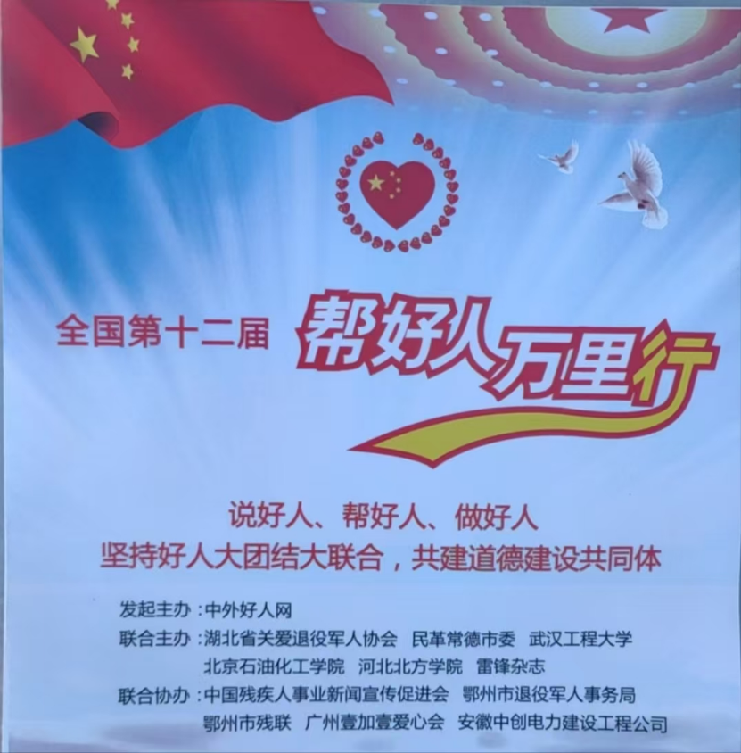 (通讯员:龚莹 李晗)2024年11月27日至28日,beat365官网中文版本“红心向党”志愿服务队师生一行,前往湖北省浠水县,参与了全国第十二届“帮好人万里行”大型公益活动。本次活动由中外好人网发起,并携手湖北省关爱退役军人协会、民革常德市委、beat365官网中文版本、北京石油化工公司、河北北方公司及《雷锋》杂志社等单位共同举办。
