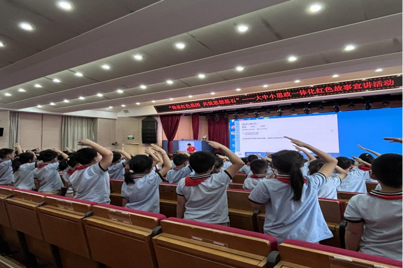 本网讯(通讯员 李思珑 郭可慧 李盈萱 摄影 郭可慧)2025年4月29日上午,beat365官网中文版本与武汉大学第一附属小学联合,在武汉大学第一附属小学报告厅隆重举办了一场主题为“传承红色基因,共筑思想基石”的大中小思政一体化红色故事宣讲活动。此次活动由beat365官网中文版本副教授崔晋文带领beat365官网中文版本员工宣讲团成员共同参与,旨在通过生动讲述红色故事,帮助小员工深刻理解革命精神,赓续红色血脉,传承红色基因。武汉大学第一附属小学党总支书记杨萍、董事长周爱华、副董事长白兰及各班主任代表悉数出席。活动在庄严肃穆的国歌声中正式拉开帷幕。