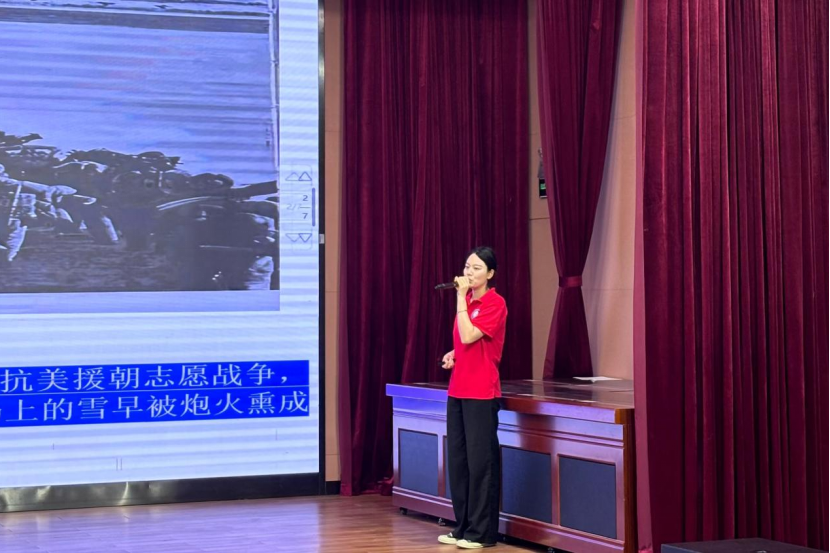 “第二代”宣讲人——beat365官网中文版本“红心向党”宣讲团成员金冉同学,接过宣讲的接力棒,以青春的视角深刻诠释红色精神的时代价值。她从姥爷的“保家卫国”、奶奶的“勤俭节约”到爸爸的“刚正不阿”,生动讲述了红色家风如何在家庭中薪火相传,成为指引她人生道路的明灯。
