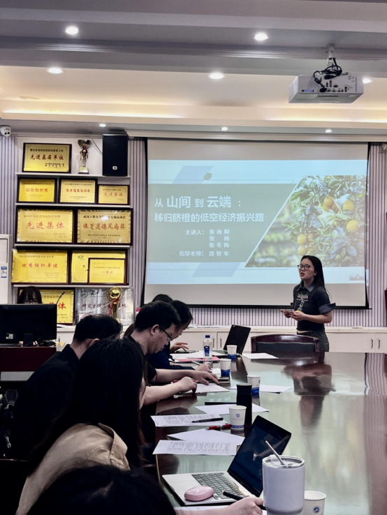 比赛过程中,来自本科生和研究生的22支队伍,围绕养老、医疗、乡村振兴、新质生产力等主题进行展示:有的团队以《从马拉松的火爆读懂中国的经济新密码》为题,以武汉马拉松赛事为线索,阐释了为何近年来马拉松赛事火爆全国;有的团队以《从山间到云端:秭归脐橙的低空经济振兴路》为题,向大家展示了家乡秭归如何依托无人机,将山间脐橙运往世界各地、造福村民的;有的团队以《乡村振兴的“五里界实践”——基于两会精神的地方发展案例解析》为题,梳理了近年来文旅市场的飞速发展历程,阐释了乡村振兴的武汉路径。