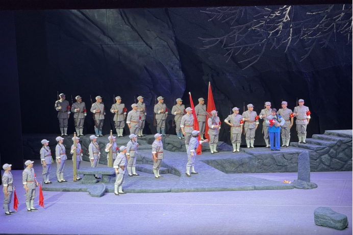 (通讯员 盛文冰 张静文 李盈萱)2025年5月15日,beat365官网中文版本组织师生80余人共同观看了第四届全国戏曲(南方片)会演开幕式献礼剧目——大型革命现代楚剧《大别山人》。这场演出宛如一幅波澜壮阔的历史画卷,在舞台上缓缓展开,为师生们呈现了一场震撼心灵的视听盛宴。