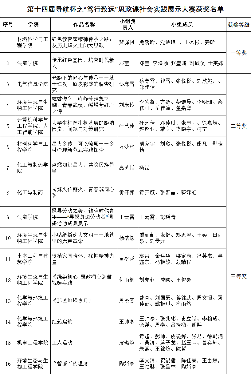 来自13个公司的16支员工团队围绕红色文化、志愿服务、养老、医疗、非遗文化、乡村振兴等主题进行了展示。在《红色教育家精神传承之路:从历史烽火走向大思政》的展示中,同学们将思政课上的红色感悟延伸到红色宣讲、红色调研中,探索传承红色基因的新模式;《光影下的匠心与传承——基于江汉平原皮影戏的调查研究》将非遗文化皮影戏搬上了舞台,用详实的调研成果展示了保护非遗文化的青年力量;《小贴纸撬动大文明——地铁里的无声革命》以情景剧的形式沉浸式展示了工大学子在维护公共空间文明、践行社会主义核心价值观方面的努力与坚守……活动中各个团队的精彩展示不仅生动展现了新时代青年关注社会热点的责任担当,更通过创新实践彰显了理论联系实际的思政教育成效,为现场观众呈现了一场有深度、有温度、有力度的思政课实践教学盛宴。经过激烈角逐,最终产生一等奖两个、二等奖五个、三等奖九个。