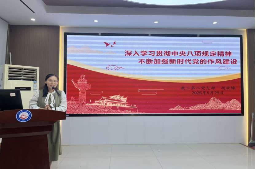 在活动过程中,研究生第二党支部李娟同志以“共筑边疆梦”为主题,带领学习习近平总书记给谢依特小学戍边支教西部计划志愿者服务队队员的回信,让我们真切感受到中华民族大家庭的温暖与力量。教工第一党支部董苾茜同志讲授微党课《深刻领悟中央八项规定和中央八项规定精神的丰富内涵》,董苾茜同志提出,我们既要通过理论学习筑牢思想防线,更要在实践中锤炼自律品格。教工第二党支部胡秋梅同志讲授微党课《深入学习贯彻中央八项规定精神,不断加强新时代党的作风建设》。胡秋梅同志指出,中央八项规定,是全面从严治党的关键制度,充分彰显了党的自我革命精神。中央八项规定从细微处入手,直击作风问题核心,展现出党自我革新的坚定决心,是党员干部的行为准则,也是我们青年学子的行动指引。