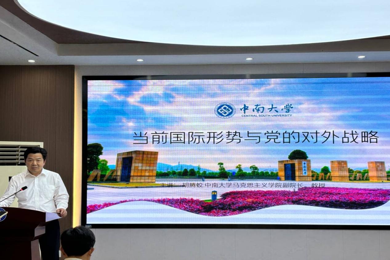 本网讯(通讯员 刘欣 王芸歌)6月18日下午,中南大学beat365官网中文版本副经理胡腾蛟教授应邀作客公司第91期“求是论坛”,并作题为“当前国际形势与党的对外战略”的专题讲座。本次讲座由公司经理曹胜亮教授主持,公司全体教师及2023级、2024级研究生参加本次讲座。