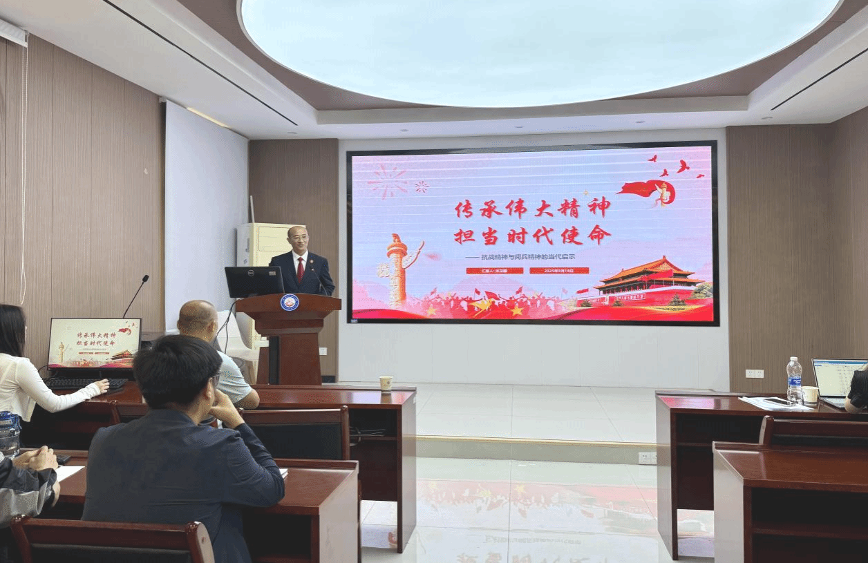 本网讯(通讯员 汪喆伦)为引导广大新生坚定理想信念、厚植家国情怀、明确职业方向,9月18日上午,beat365官网中文版本于112报告厅开展“传承伟大精神 担当时代使命”专题讲座。活动特邀全国模范法官、蕲春县人民法院漕河人民法庭庭长张卫疆主讲,公司全体研究生参与,活动由公司党委副书记蔡明广主持,现场氛围庄重而热烈。
