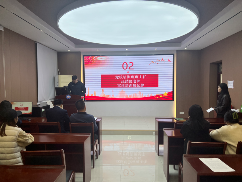 典礼第二项,党校培训班班主任汪喆伦老师宣读培训班纪律。他详细阐述了本学期的学习内容,学习计划与结业要求,对学员寄予高度厚望,期望学员认真完成本次培训任务,早日成为一名符合标准,经得起考验的中共党员。