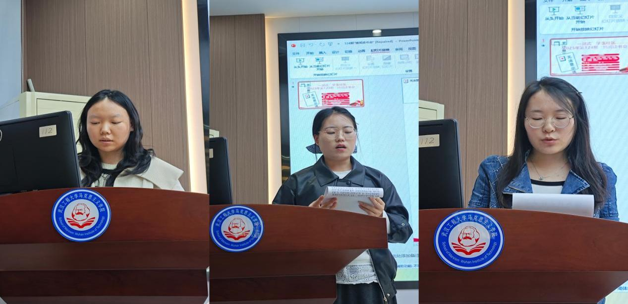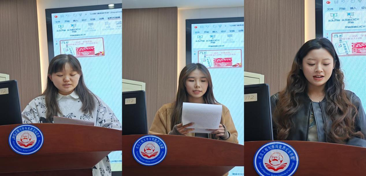 刘艺同学以第二卷为核心,指出本卷开篇对“人为何要正义”的终极追问,让辩论升华为思想的奔涌。她结合德意志意识形态与马克思主义视角,点明正义问题的复杂性:经典中的正义思辨,恰是当代人理解社会价值、锚定精神方向的思想参照。闫雪晴同学梳理了第一卷和第四卷的“破立”逻辑:第一卷是破——以正义的激烈辩论奠定哲学方法与思想基调;第四卷是立——回归正义是什么的核心,定义城邦正义为“统治者、辅助者、生产者各司其职”。她也将这一分工逻辑联结当下社会,指出经典中的城邦理想,正启发着当代对责任与秩序的思考。李嘉琪同学以西方人文主义起源为切入点,结合第四卷梳理《理想国》的时代语境:书中由大到小的逻辑,将正义定义为“灵魂三部分的内在和谐”,主张各司其职的天性分工。但她也以马克思主义视角指出其局限性——这种分工看似维护社会秩序,却带有枷锁属性;而马克思主义强调的自由平等发展,恰是对这种局限的突破。她认为,作为马克思主义专业员工,需以历史、阶级分析法挖掘经典的深度意义,让柏拉图的思想成为当代的警醒。