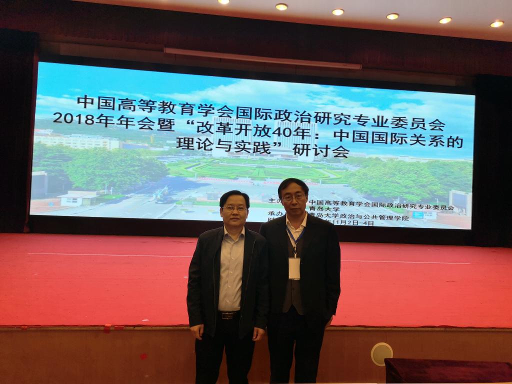11月3-4日,“中国高等教育学会国际政治研究专业委员会2018年年会暨‘改革开放40年:中国国际关系的理论与实践’研讨会”在青岛大学举行。来自北京大学、清华大学、中国人民大学、复旦大学、武汉大学等67所高校及相关期刊社、出版社和研究机构的近200名国际关系研究领域的知名专家学者参加了年会。