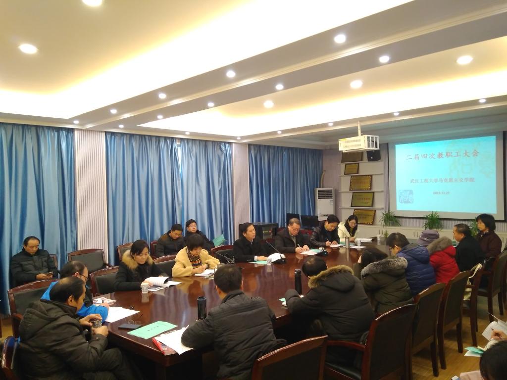12月27日下午,beat365官网中文版本二届四次教职工大会在公司会议室顺利召开。会议由公司党委书记吴秋凤主持,公司党委书记程幼金书记莅临会议并作了重要讲话,校工会常务副主席严乐到场祝贺发表贺词。公司30名教职工参加了会议。本次教职工大会的主要议程是:听取和审议2018年经理工作报告、学习讨论《湖北省重点beat365官网中文版本和示范思想政治理论课教学基地建设管理办法》、审议《2018年公司事业经费使用情况说明》《2018年工会经费使用情况说明》等。