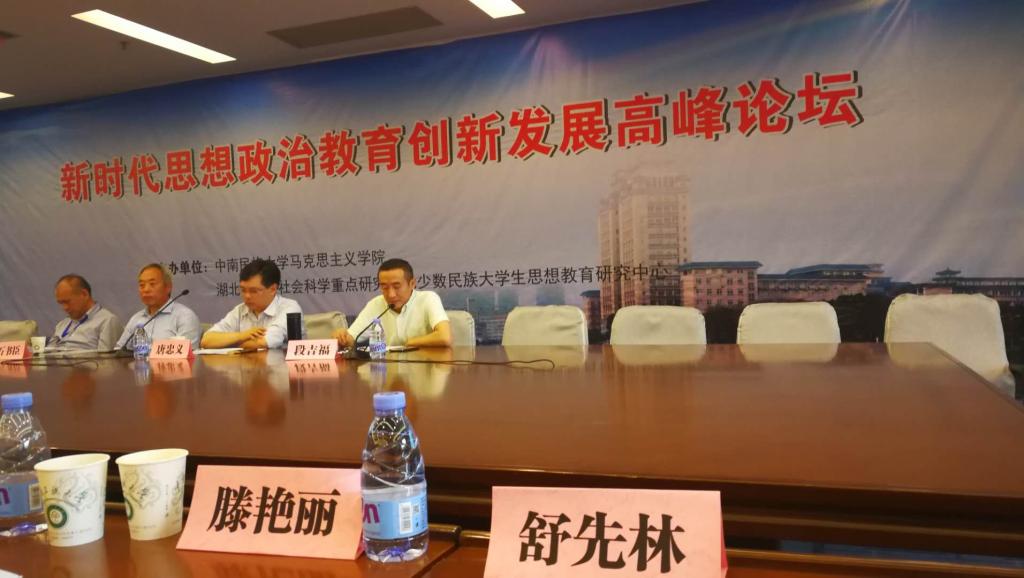 5月18日,“新时代思想政治教育创新发展”高峰论坛在中南民族大学举行。湖北省委宣传部、湖北省社会科学联合会、湖北省教育厅的主要负责人以及来自武汉大学、华中师范大学、兰州大学、上海交通大学、西安交通大学、中南大学、华中科技大学等全国50余所高校马院负责人和《光明日报》、《中国教育报》、《江汉论坛》《思想理论教育》等单位的150余名专家学者、师生代表与会。