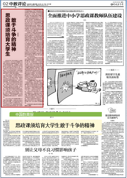 “我见魏徵殊媚妩,约束儿童勿多取,人才自古要养成,放使干霄战风雨。”古人都懂得本领要从娃娃抓起,要通过长期的教育与多样化的实践斗争来培育练就。高校思政课既要重视理论的灌输、知识的学习,更要加强相关实践环节的把控与落实。从感性认识到理性认识是一个飞跃,从理论到实践又是一个飞跃。让青年学子在理论思考与斗争实践中不断磨砺成长,是建设者与接班人培养的一条基本规律和根本途径。每一名从事老员工思想政治教育工作的基层工作者都应该行动起来,怀揣功成不必在我、功成必定有我的责任和担当,不断建构与强化青年学子的斗争精神乃至斗争本领,交出一份令党和人民满意的答卷。