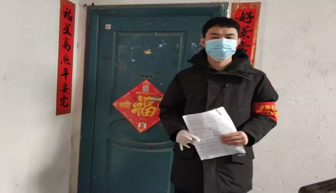 胡谱,马克思主义中国化研究专业研三党员学子,他放寒假从武汉回到家乡安徽太湖,主动自我隔离一个月后,便加入了小区新时代文明实践志愿服务队。他每天在小区门口站岗,热情地用家乡话不厌其烦地提醒居民提高防护意识,向居民宣传疫情防控措施。