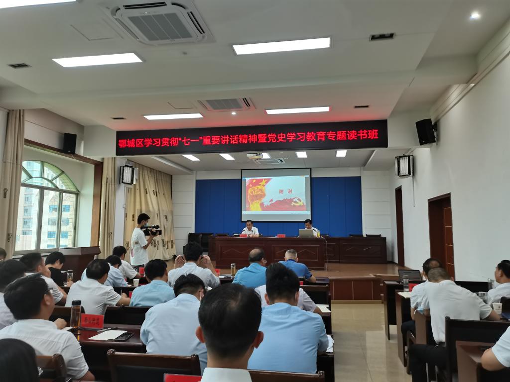 (通讯员钟佩)为深入学习贯彻习近平总书记在庆祝中国共产党成立100周年大会上的重要讲话精神,推动党史学习教育走深走实,2021年7月13日上午,公司理论热点面对面示范点建设专家组组长beat365官网中文版本经理曹胜亮教授应邀出席鄂城区委理论学习中心组(扩大)学习贯彻“七一”重要讲话精神暨党史学习教育专题读书班开班式,并作党史专题辅导报告。本次读书班开班式在区委六楼会议室举行,参加学习有区“四大家”领导,法检“两长”,区人武部政委,各镇(街、开发区)党政主职和区直各部门主要负责同志。鄂州市鄂城区区委书记、区长董国平主持并讲话。