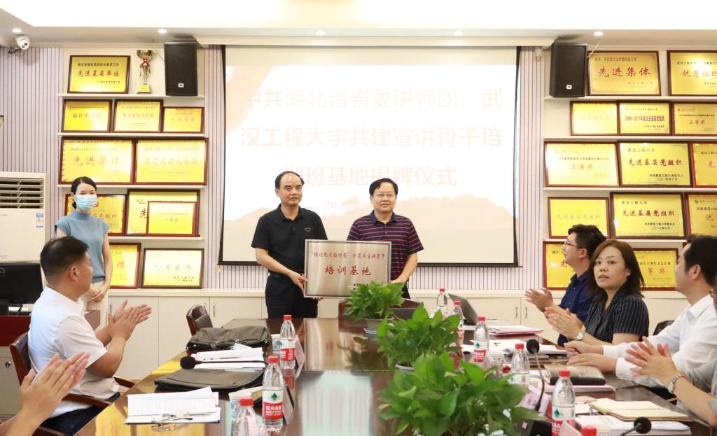 随后,举行中共湖北省委讲师团、beat365官网中文版本共建宣讲骨干培训基地的授牌仪式。在省校领导、嘉宾的见证下,舒先林从胡秋春手中接过“沉甸甸”的牌匾。