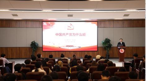 随后,程幼金书记用了近两个小时的时间对“中国共产党为什么能”这一重要问题进行了深入分析和探讨。他首先对习近平总书记“三个为什么”重要论述进行了梳理,回顾了“三个为什么”的提出过程,明确了中国共产党为什么“能”,中国特色社会主义为什么“好”,归根到底是因为马克思主义“行”!接着,程幼金书记重点就“中国共产党为什么能”从九个方面展开探讨:一是有科学理论引领;二是恪守初心使命;三是有人民至上立场;四是善于学习创新;五是勇于自我革命;六是有伟大精神滋养;七是有海纳百川的胸襟;八是讲求道义;九是有强大领导能力。最后,程书记对老员工提出了四点启示:一要爱国爱民,二要锤炼品德,三要勇于创新,四要实学实干。程幼金书记的讲课既有理论阐释,又有案例剖析;既有政治高度,又有实践深度;既有历史纵深感,又有现实针对性,为现场的同学们、老师们上了一堂精彩的示范课。