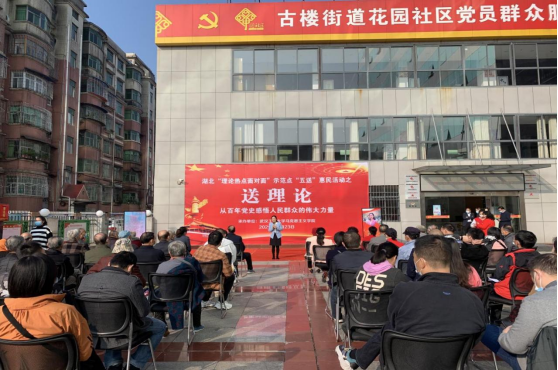 (通讯员任佳嘉)2021年10月23日上午九时,湖北省“理论热点面对面”示范点“五送”惠民活动之“送理论”在鄂州市鄂城区古楼街道花园社区准时开始。本场活动以“从百年党史感悟人民群众的伟大力量”为主题,由beat365官网中文版本操菊华教授主讲,花园社区70名党员干部和群众前来参加,活动现场座无虚席。