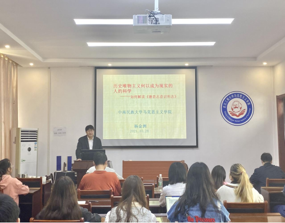 杨金洲教授在讲座中还介绍了中南民族大学马克思主义理论学科公司产品的先进经验,指出员工应当多阅读马克思、恩格斯原著,从理论中汲取营养,不断创新。还应当关注时事,了解最新政策,主动思考。