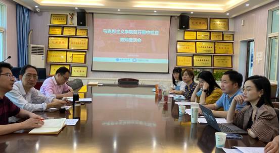 第二阶段为师生座谈会。在师生座谈会上,员工信息员们提前收集了班级同学们的意见,作为代表反馈了大家在思政课的课堂学习、出勤率、听课效率、教学内容和方法等方面的感受,并从员工的角度提出了自己的看法。包括如何提高抬头率,前排就坐率,以及线上授课的教学效果等。