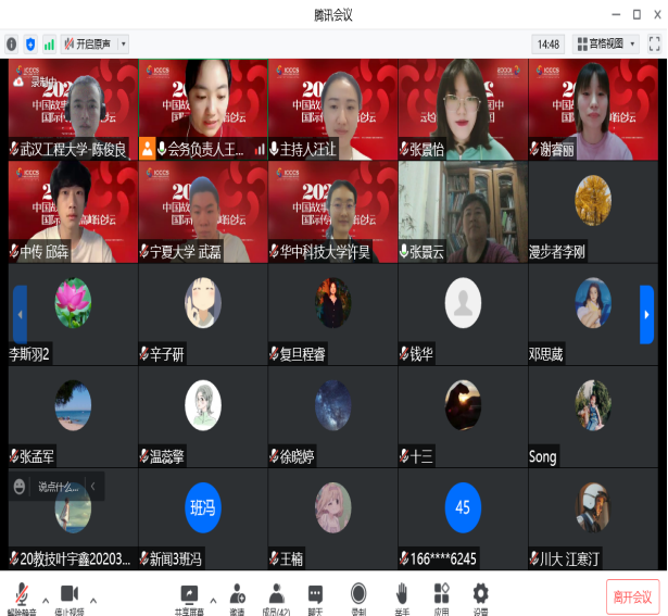 5月14日下午,彭颜红博士在会议上作了题为《论中华体育文化国际传播的提升艺术的报告》,受到与会师生充分好评。同时,彭颜红博士指导的三位硕士研究生陈俊良、王钰蕾、任新阳都提交了论文。且经过激烈竞争、层层选拔,陈俊良同学的《新媒体视域下马克思主义大众化传播的形式创新》、王钰蕾同学的《新时代高校思想政治教育理论课要讲好抗疫故事》两篇论文入选本次国际会议,并获准在会议上发言,得到本论坛专家的肯定与好评。