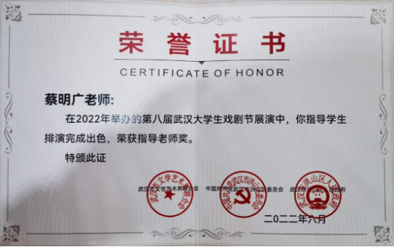 其中,蔡明广老师指导员工排演完成出色荣获“指导老师奖”,曹松同学在演出中表现出色荣获“优秀表演奖”。