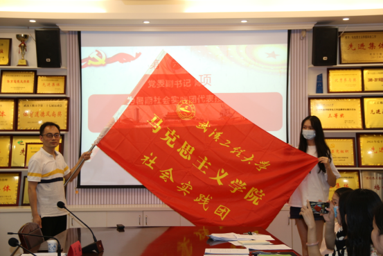 公司党委副书记、副经理(兼)陈俊为大家详细解读《2022年暑期“三下乡”社会实践活动实施方案》后,现场为实践团授旗并寄语实践团成员:一要红心向党,筑牢理想信念,坚定不移听党话、跟党走,把思政课讲在祖国大地上。二是要爱心向民,用耳朵倾听人民呼声,用内心感应时代脉搏,把温暖传递在祖国大地上。三是要重心向行,用脚步丈量祖国大地,用眼睛发现中国精神,把论文写在祖国大地上。