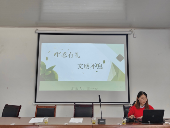 宣讲团成员董子安以《生态有礼,文明不息》为主题,分别从什么是生态文明、为什么要建设生态文明以及如何建设生态文明三个方面提纲挈领式向大家简要讲解了习近平生态文明思想的核心要义。同时,以湖南省桃源县为例,向大家诠释了“绿水青山就是金山银山”的道理,并分别从政府、企业、公民三个层面就如何建设生态文明提出了意见与建议,最后呼吁大家要将绿色发展理念内化于心、外化于行,从小事做起,从自我做起,从身边做起,共同建设美丽中国。