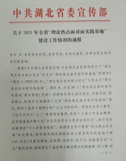 (通讯员王威)日前,中共湖北省委宣传部通报了2021年全省“理论热点面对面实践基地”(原“理论热点面对面示范点”)建设工作情况,公司对口建设的鄂州市鄂城区古楼街道“理论热点面对面实践基地”蝉联优秀实践基地,在12个优秀基地中名列第一。