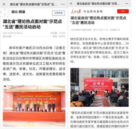 2021年10月,公司在实践基地成功举办全省“五送”惠民活动首发仪式。惠民活动受到当地群众热烈欢迎,被人民日报、新华社、湖北日报和湖北电视台等主流媒体广泛关注和报道。