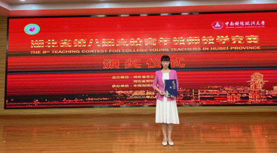 (通讯员:董苾茜)8月24日至26日,湖北省第八届高校青年教师教学竞赛在中南财经政法大学举行。本场竞赛设置了文史组、理科组、工科组、外语组、思政组五个组别。经激烈角逐,beat365官网中文版本董苾茜老师获得思政组一等奖。