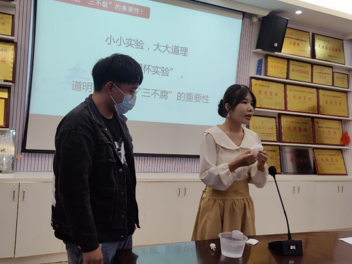小小实验,大大道理。稽树艳同学通过“覆杯实验”告诉我们一体推进“三不腐”的重要性,强调我们必须充分认识反腐败斗争的长期性、复杂性、艰巨性,提高一体推进不敢腐、不能腐、不想腐能力和水平。