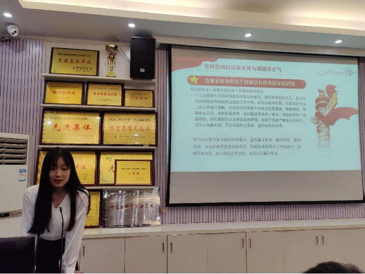 许晓敏同学以“家风”为切入点,以小见大,强调我们青年老员工要担当传统家风的“传承者”,学习优秀的治家文化,将“修身、齐家、治国、平天下”的处世哲理和爱国爱家的博大情怀内化到家庭成员的思想之中,外化到家庭成员的行为之上。