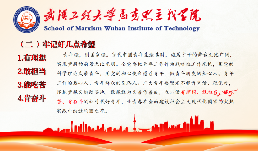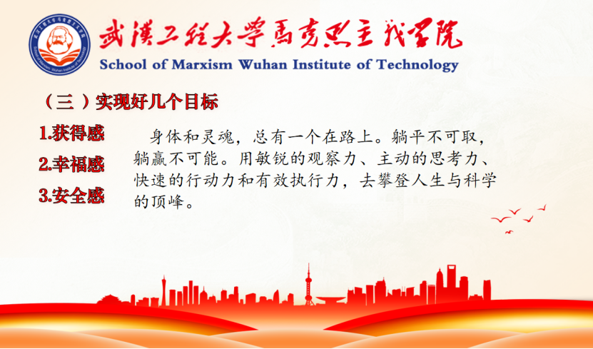 第三项是从自身经历出发,与分享交流了几点经验与建议,鼓励全体研究生要正确处理好“强身与强心”“出世与入世”“有所为与有所不为”“个人与他人”几组关系,牢记习近平总书记提出的“立志做有理想、敢担当、能吃苦、肯奋斗的新时代好青年”的殷殷嘱托,以敏锐的观察力、主动的思考力、快速的行动力和有效的执行力,不选追逐实现自己的获得感、幸福感和安全感。