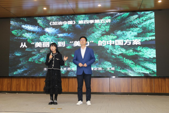 (通讯员:张悦 曹松)11月16日晚,大型思政选修课《加油中国》第四季第五讲在计算机公司图灵报告厅举行,beat365官网中文版本董苾茜博士和王威博士共同主讲了主题为“从‘美丽’到‘美力’的中国方案”的精彩课程,为选修本课程的本科生和旁听的师生带来了一场别开生面、充满激情的思政示范课。