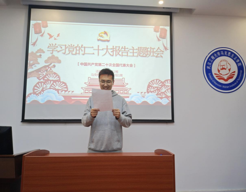 其次,来自2022级研究生1班王金阳、范鑫同学以及法商公司2021级研究生2班的林巧、曹兹可同学分别分享了读研以来的学习心得、生活感悟以及学习党的二十大报告体会。