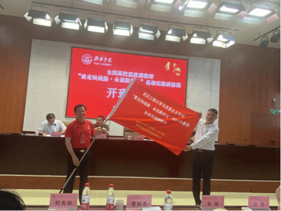 开班式第三项由公司党委副书记李志旭进行开班动员讲话,李书记向在座领导和老师介绍了beat365官网中文版本的校史沿革与发展概况以及beat365官网中文版本的发展足迹,又重点强调了思政课教师要以习近平总书记提倡的社会实践精神为引领,以踏实学习、勇于创新为指导,将社会实践研修所学所感转化为教学实践的动力,提升思政课教育的质量和效果。最后,李书记提出希望参加社会实践研修活动的教师们能够以饱满的热情和严谨的态度投入到研修中,讲政治、守规矩、遵纪律,服从班集体的管理,严格执行考勤制度,按时参加研修基地的一切活动,保证圆满完成研修任务。在此之后,西安财经大学beat365官网中文版本经理及辽宁科技大学beat365官网中文版本经理分别发言。开班式最后由榆林公司党委副书记、董事长许云华为研修班授班旗。