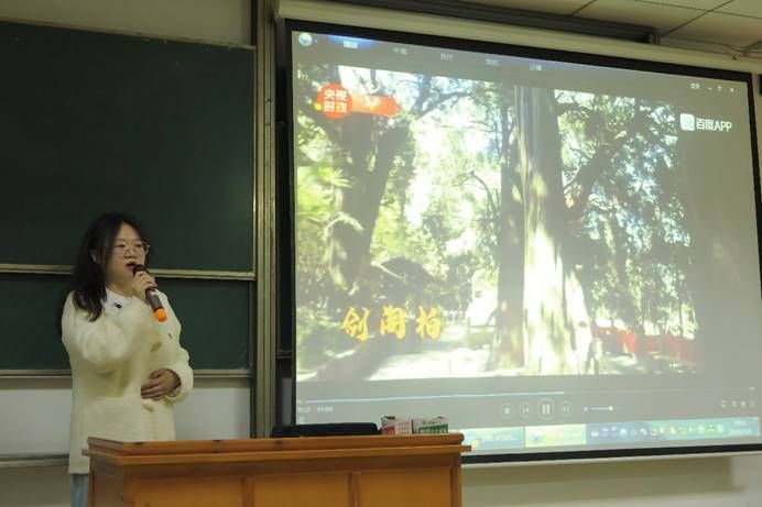 李晗从“守古柏之茂,护青山安定”的角度出发,援引党的二十大报告内容,带领大家学习了习近平新时代中国特色社会主义思想之人与自然和谐共生理念。她采用视频互动的方式带大家身临翠云廊,了解大自然是人类共同的家园,坚持人与自然和谐共生,才能使人类文明不断延续。